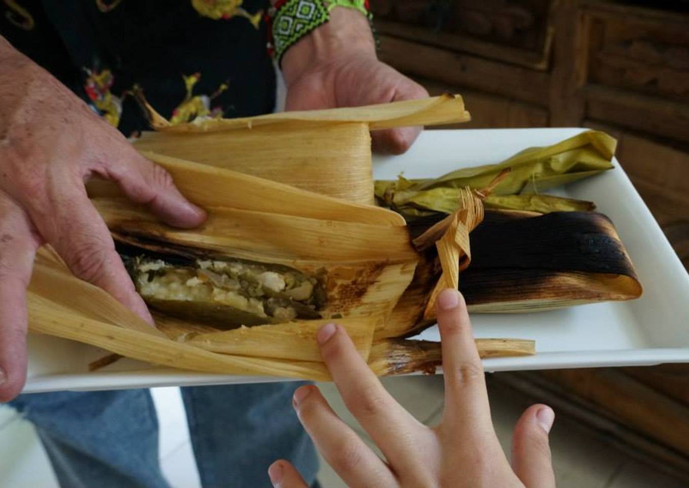 - Hojas elote húmedas para envolver los chiles