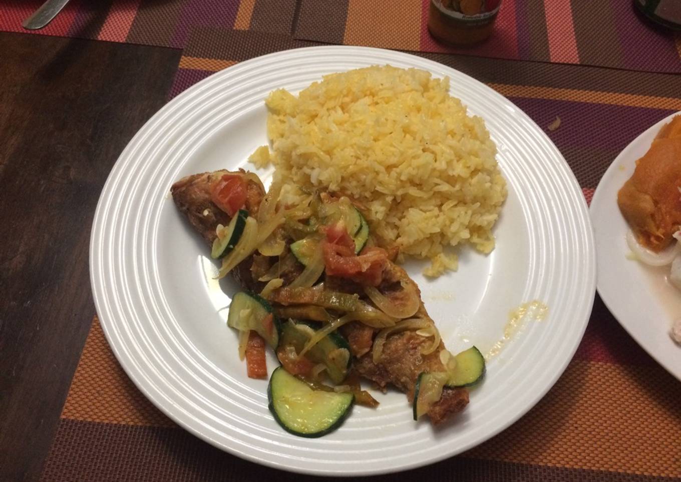 Hello everybody, I hope you're having an amazing day today. Today, we're going to make a distinctive dish, Pescado con Escabeche y Arroz Amarillo. It is one of my favorites. This time, I am going to make it a little bit tasty. This is gonna smell and look delicious.