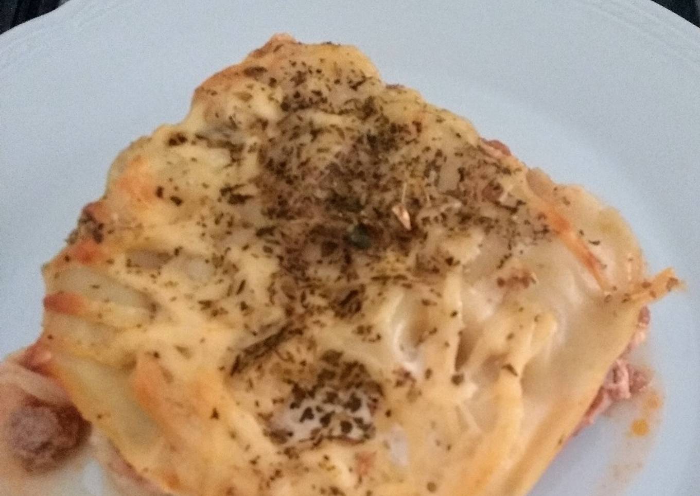 Lasaña de carne picada, horneada al baño María