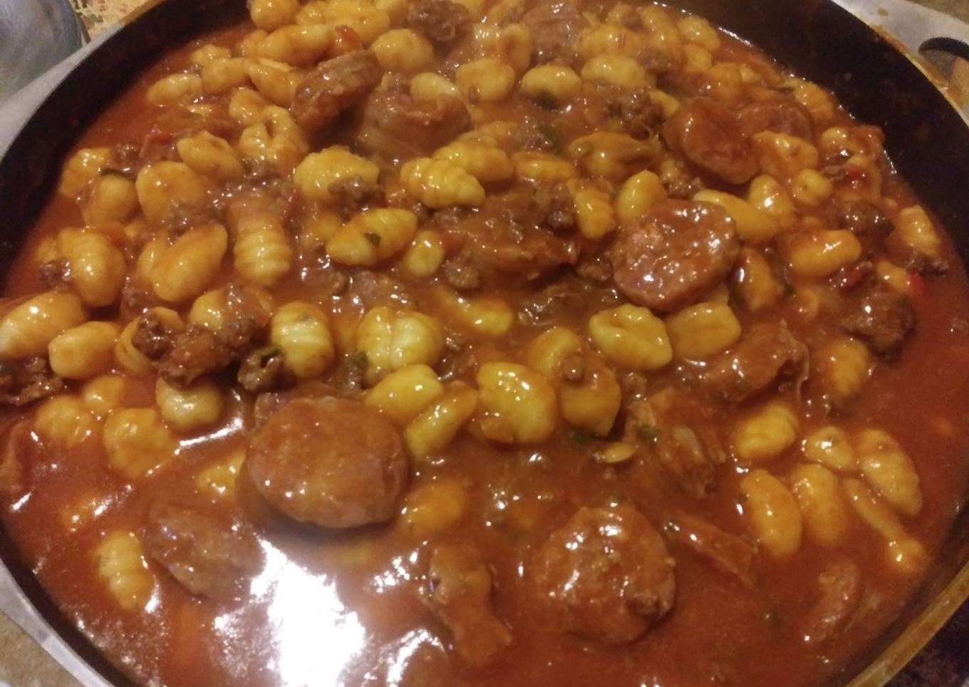 Tuco con chorizo y carne picada